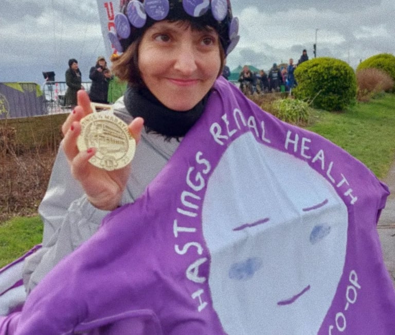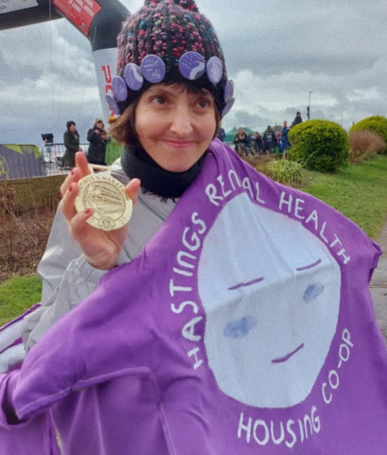 Someone in Hastings Rental Health suggested we run the Hastings Half Marathon to raise the profile of HRH. So, Nichelle and Sarah started training. With 5 weeks instead of the recommended 9 weeks training, both suffered injuiries early on, and Nichelle had to back out due to moving house again. So Sarah tried to push through her dodgy knee, and cobbled together a little house to run in. There were issues right up until the race with a last minute family trip to A&E and so very little sleep, but some how through the delirium, the marathon was run, with wonderful support from family, new coop members, neighbours and community. We will be melting the medal down for our home's first door knob!