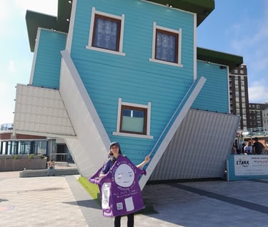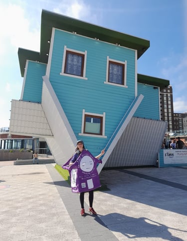 Bumping into an old friend of a friend in the street in Lewes while dressed as a house. Had no idea they lived there!