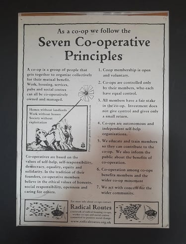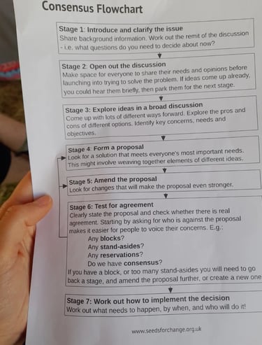 There is a small donation for the weekend covering basic electricity costs and food. All coops that wish to join RR must do 3 training workshops incl an Intro to Radical Routes structure (pic 7) and Consensus training for decision making (pic 8). Then you have the opportunity to introduce your coop in order to join, and then you have the opportunity to apply for support through the Radical Routes network, including a Radical Routes loan. There was a lot of support for new coops, and free sharing of information, despite many people needing support at the same time. There wasn't a huge amount of working class or Global Majority representation at the weekend, a pattern that aligns with what we were told at the start 'people like you don't start housing coops.' We are here to change this. They did meet the working class championing Greenwood Coop from Leeds, and connected with folks from the legendary Cornerstone Coop, and another potential place to stay with Leicester's Blackcurrant Coop.