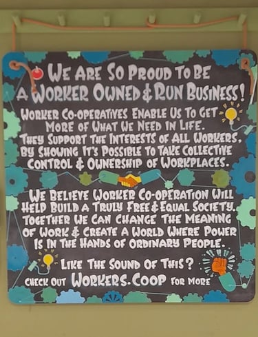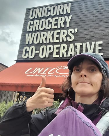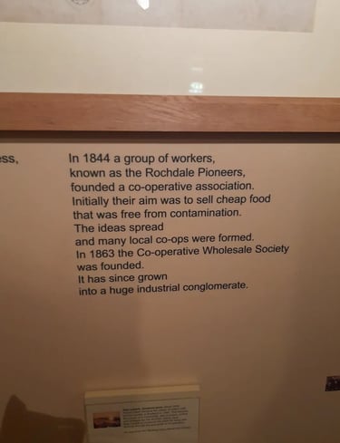 They stayed up chatting with their lovely host and met more confused kids in the morning, and were gratefully sent off packing with birthday cake and recommendations for local co-ops to pop into and the People's Museum. Like a good little student (one of their hosts was actually a teacher, and founder of their own new school! Talk about power couple!) they checked everything off the list, picking their lunch up at Unicorn Co-operative supermarket, the biggest co-operative food supplier they had ever seen! Then the co-operative plant nursery where they picked up a Pink Glitter Spinach for their next host, and went on to learn about the co-operative movement in the museum. Of course this took much of the day, which meant less time walking to Liverpool so they had to start their walk a lot closer. Of course much walking was already done around Manchester itself.