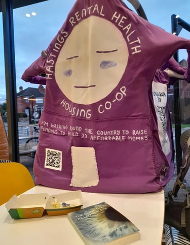 As they head to Manchester, Housegirl was getting a little delirious and couldn't quite work out how to read the signs for Manchester. They had also seemingly dissassociated somewhat from their feet. What are those things underneath my house? I'm a house! They hurried as quickly as they could toward the nearest take away in order to get some calories in, bombing it downward into Manchester with the dusk cityscape lighting up before them, bits of rice flying about. Making it into the city they realised their hosts were on the other side of town, so they braved the city tram, only to end up in the wrong place. Eventually they made it to a pub where their host found them downing a little vodka to help the pain of the weight they were carrying which was beginning to feel like a planet.