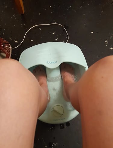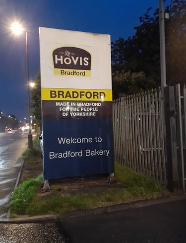 After Leeds, Housegirl headed to stay with a friend's mum in Bradford. Along the way, they got trapped in a wee little parallel universe on a housing estate, wondering around lost for a good 40 minutes. Making their way finally out of the other end, they carried on towards their host, trying their hardest to arrive in good time and not keep folks up past their bedtime, but the sun was already setting and time getting on. Along the way, they came by a big old Hovis factory, which wasn't quite as wholesome smelling as you would expect : ( Finally they made it to their hosts and were presented with every possible snack and food stuff, fleece PJs and a foot spa. Glorious happy feet.