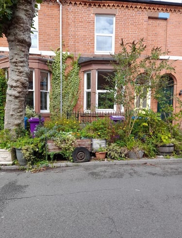 Granby 4 Streets was a welcoming sight, so much street planting and murals. Liverpool has an energy like few other cities, it's fierce in it's resilience and resistance against class oppression, racism, exploitatoin, and the right to simply be. Most people just get who the enemy is. Hazel showed Housegirl round the award winning Winter Garden, which is 2 terraces made into a tropical oasis with a holiday apartment at the top which helps their Community Land Trust keep going and keep the area affordable and in the community, and showed Housegirl all the planting around the back of the houses too in their communal alleyway. Digging up a spot for the pink glitter spinach, Hazel explained the history of the area and they sat round her kitchen table with more local activists and community passing through. In her wisdom, Hazel pointed out that Housegirl might probably be suffering from exhaustion by now, and it was in this acknowledgement that they hit a wall. Luckily Housegirl's mum lived in a neighbouring town, so they headed over for a pitstop and to catch up on their storyboarding job.