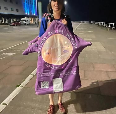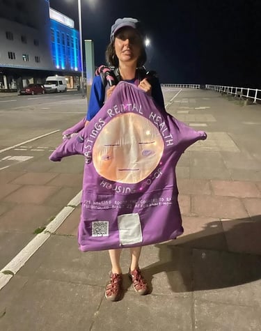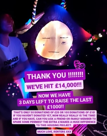 It wasn't until Housegirl was walking home alone on the seafront again that their phone started buzzing like mad and they saw the crowdfunder had hit it's target. Onlookers watched on perplexed as they saw the house shaped woman running up and down the prom shouting.